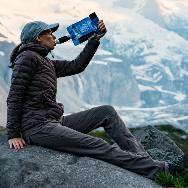 ソーヤーはポータブルな浄水器としては世界最高水準の浄水性能を誇る浄水フィルターです。たくさん水を持ち運ぶ必要がなく、川や湖など、各地に点在する水源から採水してすぐ飲めるため、登山やロングトレイルで親しまれています。超高密度のフィルターでろ過することで、水の中に潜む有害な細菌や水性微生物、エキノコックスなどの寄生虫を99.99999%取り除き、飲料水に変えることができます。