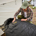 4.中までしっかり乾いたら、コンプレッションサックにしまいます。圧縮したま保管してしまうと、寝袋へ負担がかかってしまうので圧縮せずに保管ください。