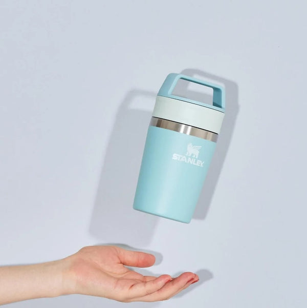 ●凹んだ飲み口は傾斜付きでこぼれにくく、熱い飲料も飲みやすい構造。