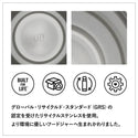 [材質]内びん:ステンレス鋼、胴部:ステンレス鋼、肩部:ステンレス鋼、蓋:ポリプロピレン・ステンレス鋼、パッキン:シリコーンゴム、スポーク:ステンレス鋼・ポリプロピレン