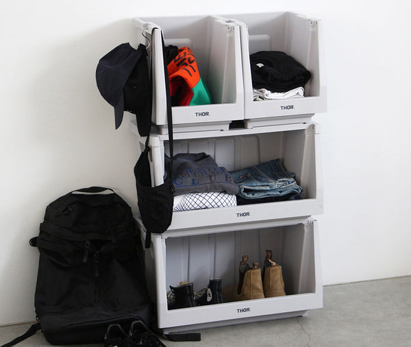 THORスタッキングシェルフコンテナは、自由にカスタマイズできる柔軟な設計とデザイン性・機能性を兼ね備え、あらゆる場面で頼りになる収納アイテムです。収納スペースをさらに洗練されたものにしてみませんか?