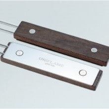 ウッドハンドルはステンレスプレートを固定した高級感のある仕上がり。