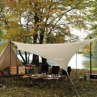 より焚き火を楽しむために火の粉に強く、風合いの良いTC素材を採用したオープンタープ