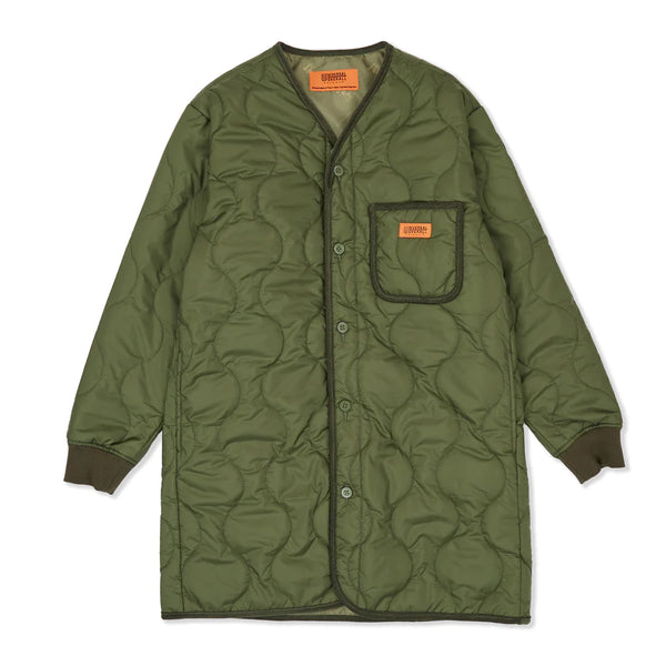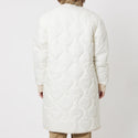 表面に光沢感があるキルティング素材を使用し、程よい肉感で中わた入りなので保温性も高く実用性高いアイテム。ロング丈ながらもすっきりと着こなせるため、様々なボトムスにバランス良く合わせられ、トレンドに流されず長く愛用していただけるデザイン。