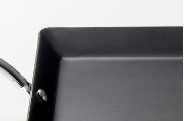 鉄の表面に窒素を浸透させて表面を硬化する窒化加工は、錆びが大敵となる船舶や航空機にも用いられる技術。シーズニングや油ひきなどの手間が不要になるだけでなく、油なじみも良くなり、鉄板の使い勝手が大きく向上します。