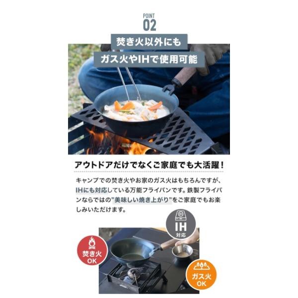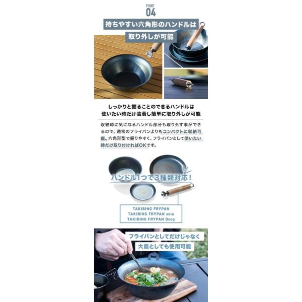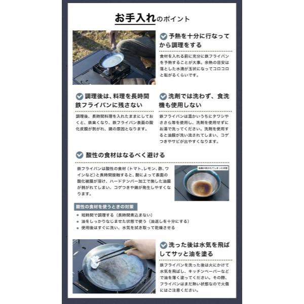 | 材質 | フライパン:鉄(ハードテンパー加工) 木製ハンドル持ち手:ウッド 木製ハンドル引っ掛け部:鉄(フライパンと同素材) |
