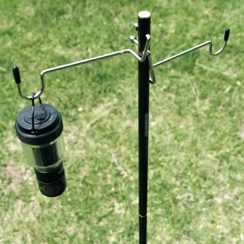 2WAY STAND2.0は、テーブルに挟んで固定、もしくは地面にペグを打ちこんで固定と様々なシーンで使用できるランタンスタンドです。