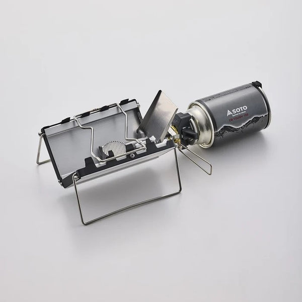 収納時には厚さ25mmという薄さになるシングルバーナーです。バーナー部を2枚のガードで保護するので、頑丈でパッキングもしやすいメリットがあります。