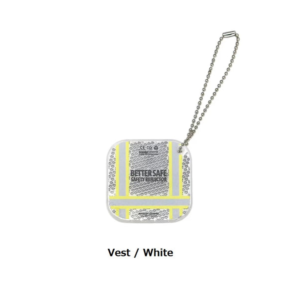 "Vest"のタイプは海外のワーカーやアウトドアファッションで用いられているリフレクター付のベストのデザインをイメージ。"Barcode"のタイプは海外の日用品のラベルをイメージしたバーコードデザインを大胆にプリントしました。直径20cmのボールチェーンが付属しており、リュックや鍵に取り付ければファッションのアクセントになるだけでなく、長めのチェーンが動くと揺れることで夜間の光をキャッチし安全性も高めてくれます。